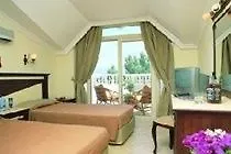Las habitaciones del hotel están equipadas con una terraza y climatizador.